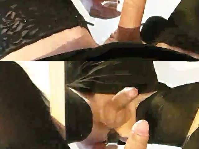 Sissy in petticoat and nylons gives BJ to a sextoy