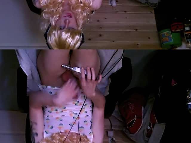 Blonde sissy whore smokes and plays