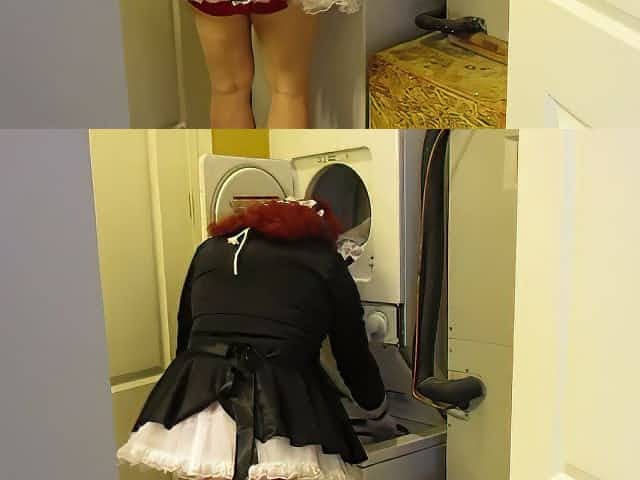 Sissy maid doing laundry
