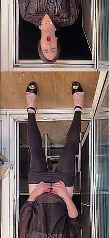 Sissy teasing and sex toy riding on balcony