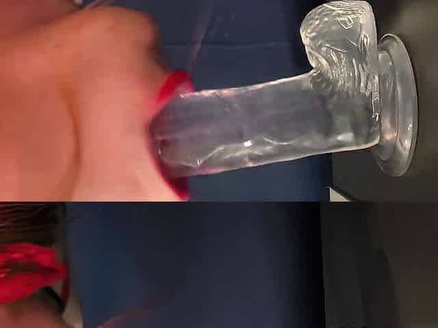 Learning how to do a wet and slobbery blow job on a vibrator with red lipstick