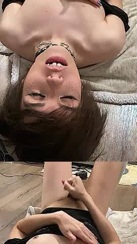 Cute Russian femboy jerks off massive rod upside down with a girly hawt face