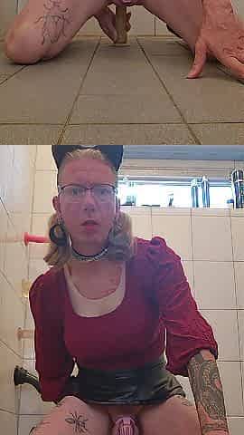 Sissy Booty Cutie Tiffany Ciskiss Bangs Butt On Xxl Ribbed Sex toy In Bathtub