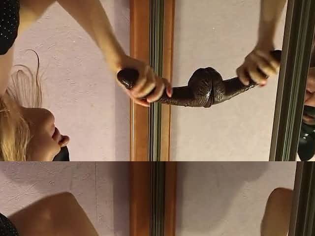 Sissy Elise worships cock in front of the mirror up close