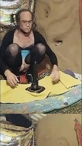 Banging Sissy Booty On Xxl Ribbed Sextoy Extrem Anal Insertion