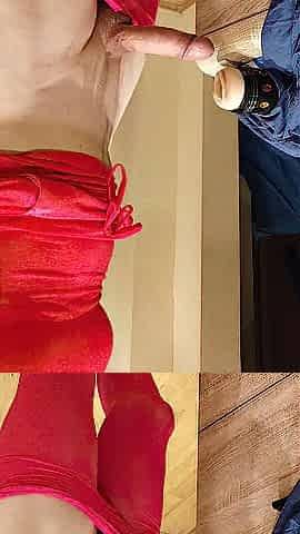 suesse schlanke weisse transe sissy mit grossem schwanz unter dem kleid spritzt heftig ab