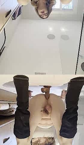 Youthful femboy with bubble booty rides on a sex toy and cums close-up