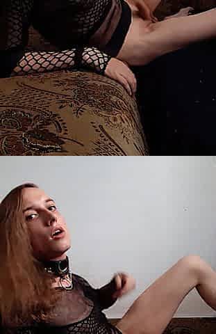 Sissy femboy screws herself with a sex tool to squirt and anal climax
