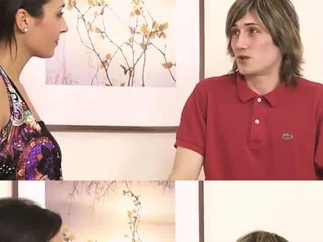 Dominant wife humiliates sissy husband while skillfully handling his tiny cock