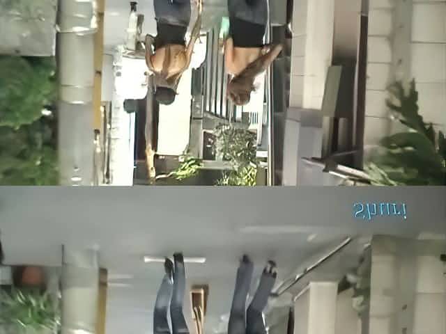 Gorgeously tanned Asian skank poses seductively by a fireplace