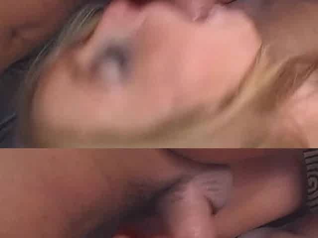 Mature blond skank gets her shaved snatch plowed by young stud then gets facial