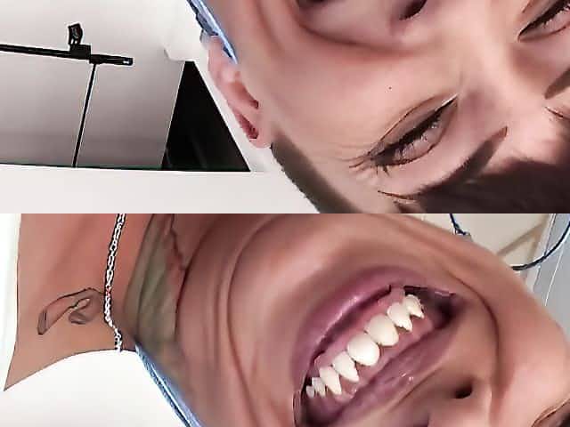 Skanky bitch with nice pair of tits shows off her deeptroating skills