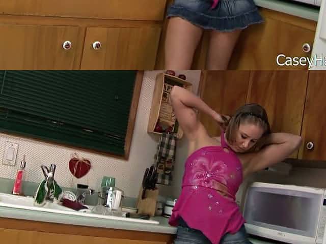 Skanky amateur GF flashes her tits before playing with her coochie