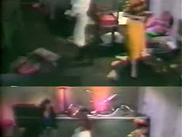 Skanky blonde teen strokes hard dick gently in a retro porn video