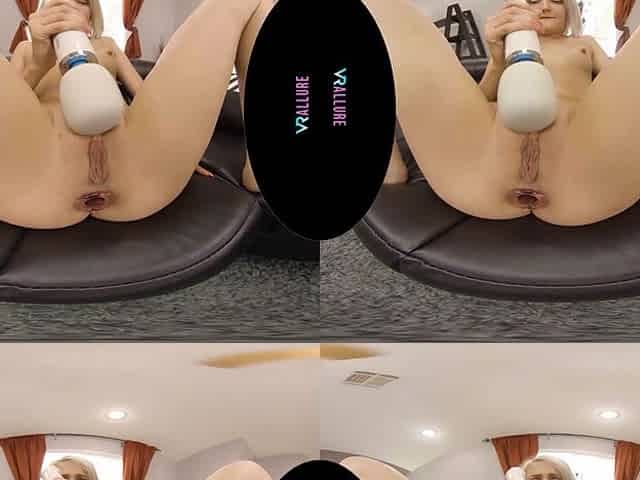 With her sexy legs wide open, the slim blonde gets her tight anal hole drilled deep