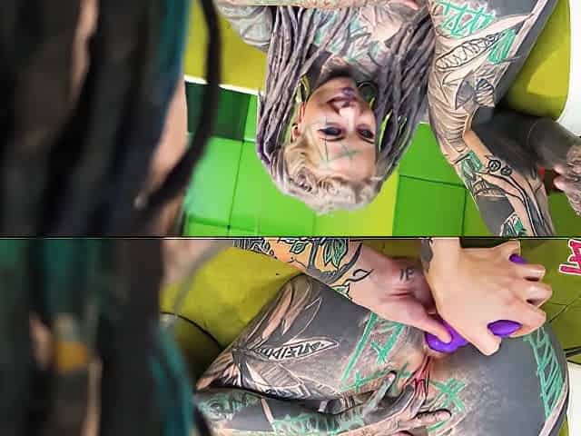 Skinny hipster babe spreads legs in order to get her anus stuffed