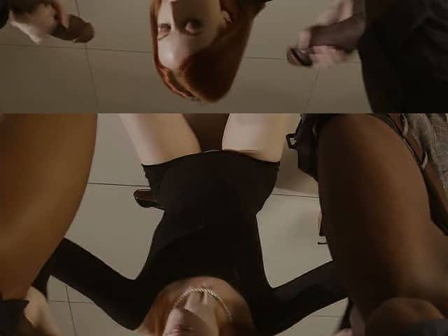 Pretty redhead Alex Harper takes DP from two strong black studs