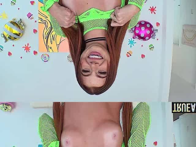 Nerdy and slim redhead worships cock and gets fucked in the ass real hard