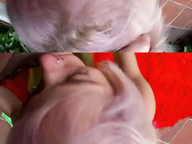 Short-haired blonde girl gets fucked in the ass outside