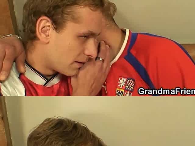 Slim golden-haired granny swallows 2 jocks for job