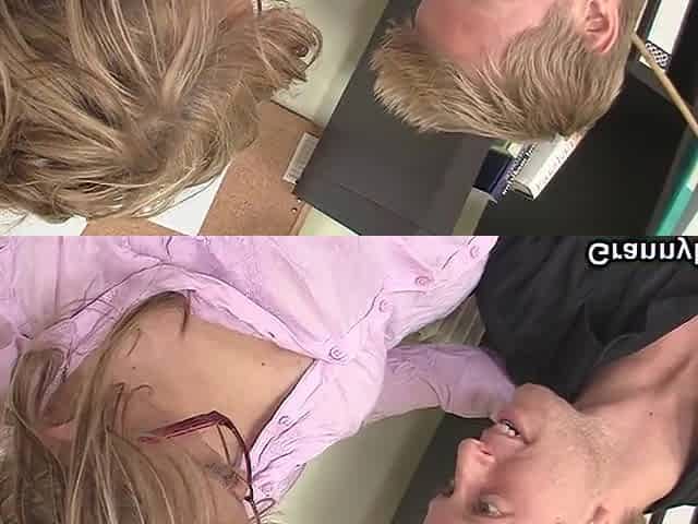 Skinny blonde grandma spreads legs for him