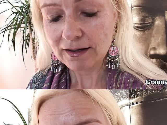 Hot threesome with skinny blonde granny