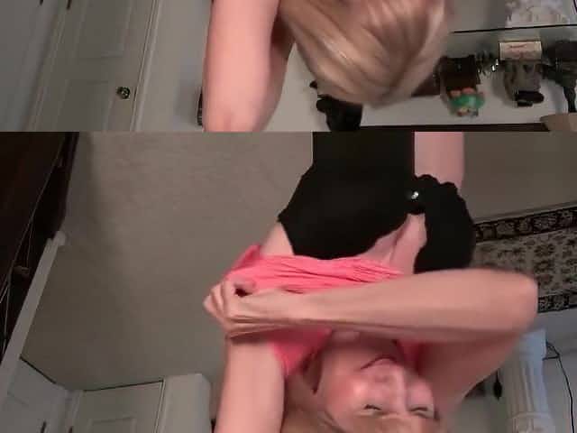 Skinny Blonde Grandma Swallows Two Cocks