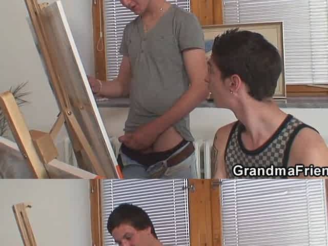 GRANDMA ALLIES - Delivery dudes share blond slim old lady