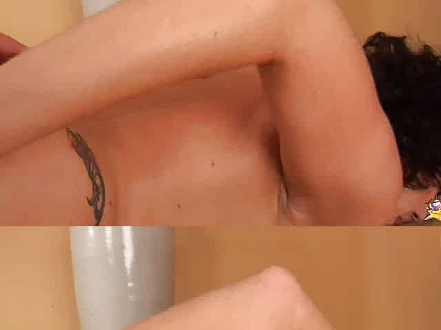 Horny skinny teen masturbates and watches mature lesbian sex