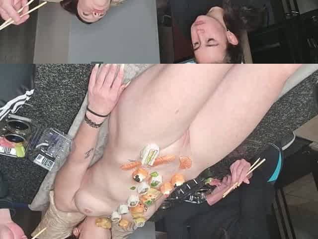 Serving sushi off of my naked skinny body - body sushi - NYOTAIMORI
