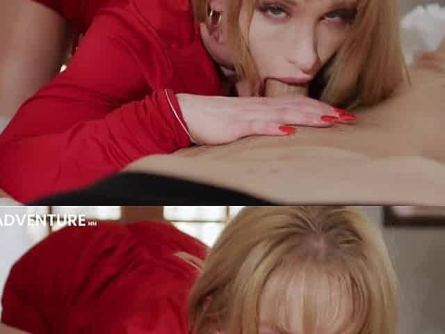 Skinny Blonde Chick With A Big Tits Is Licking Cum From A Hard Cock