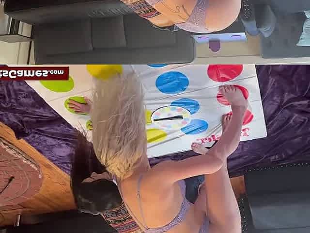Cute lesbians use sex toy after playing striptease game in living room