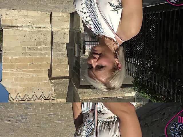 Brunette milf shows off her small tits in public