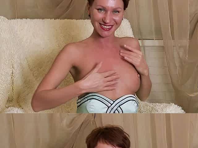 Beautiful redhead MILF Anhen nicely plays with her shaved pussy