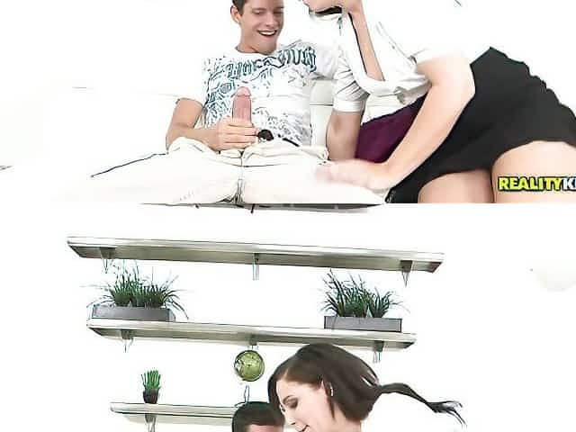 Skinny Jumps Happily On A Long Erected Cock With Kirsten Lee