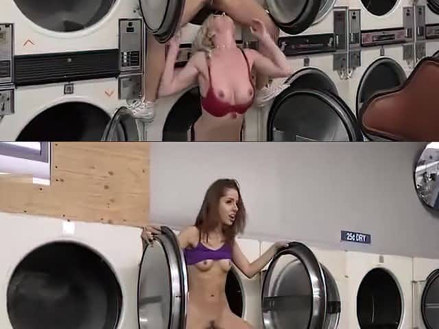 Hot Blonde MILF Seduces Tiny Teen With Braces In Laundry Mat