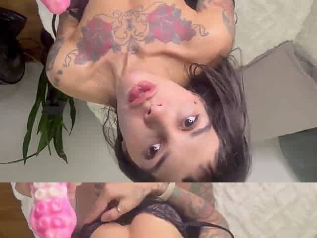 free Goth Inked Honey Rides Biggest Neon octopus Vibrator Until This babe Shakes
