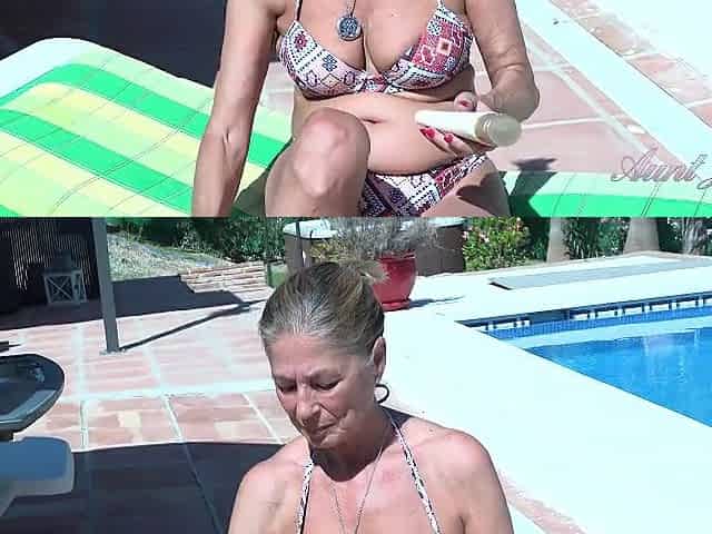 Horny GILF Marta Takes A Skinny Dip, Masturbates Poolside