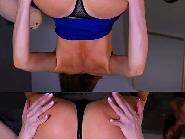 Hot Blonde Cheerleader in Shortest School Uniform Skirt Flashes Pussy and Ass but Also All Natural Beautiful Tits
