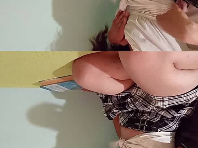 Pigtailed Plaid Skirt Playtime - Lesbian Dildo Sex Until My Husband Surprises Her From Behind with a Doggy FFM Threesome