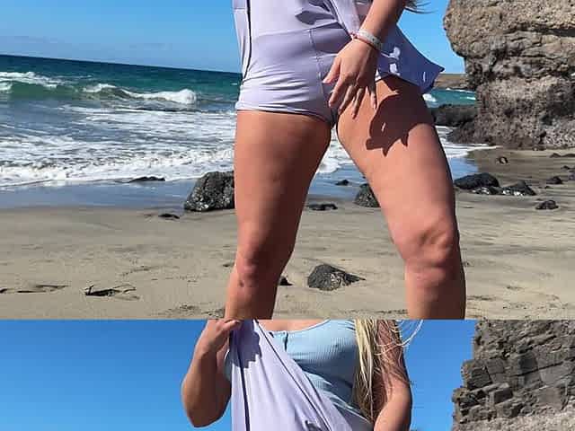 Girl Peeing and Wetting Skirt Pants at the Public Beach