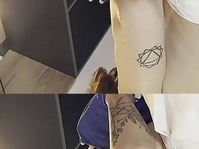 Emily Addison & Maggie Green upskirts with micro belts