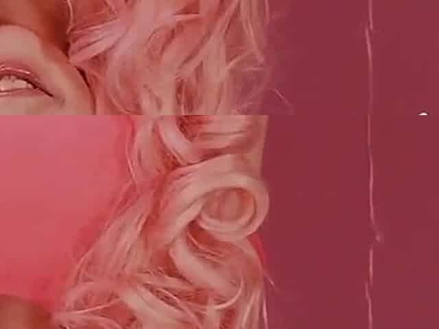 Big tits blonde Edina in thong, fetish wear, goes lesbian.