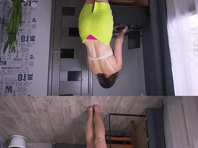 Girl with Ponytails Cleaning Her Flat Without Panties!