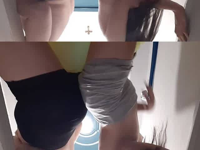 2 Sexy College Erasmus Angels in Short Miniskirt and Satin Night Suit No Pants plays with a Knob