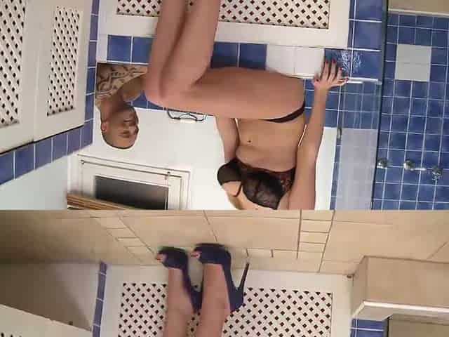 Big Tits Big Ass Hot Blonde MILF in College Uniform Skirt and Black Pantyhose with High Heels to Flash Pussy and Booty