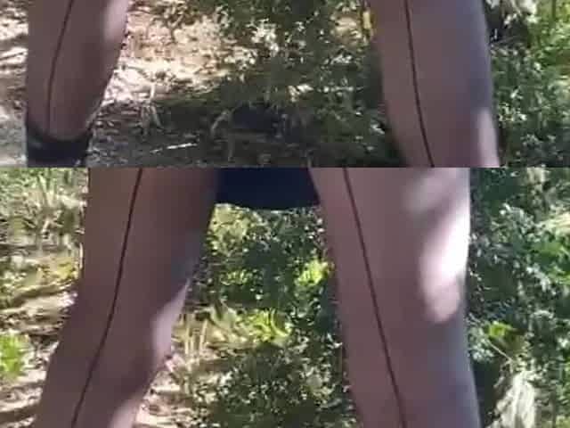 Sweetheart in short petticoat showing her pink snatch outdoors