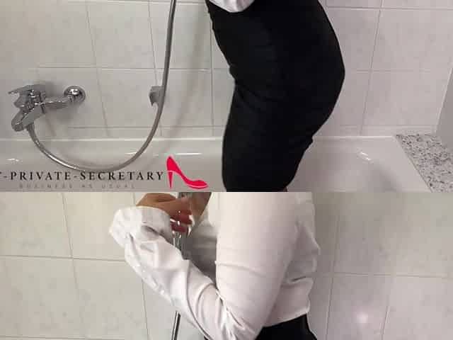 my intimate secretary taking shower in business costume and getting jizz flow on lace pantie booty