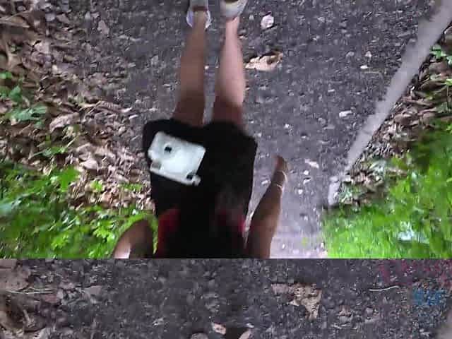 Outdoors POV video of skinny Mi Ha Doan showing her fuck hole