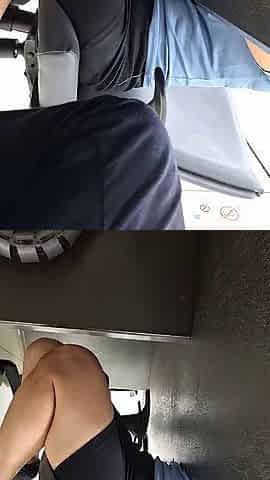 Lilac thong up skirt of bus passenger